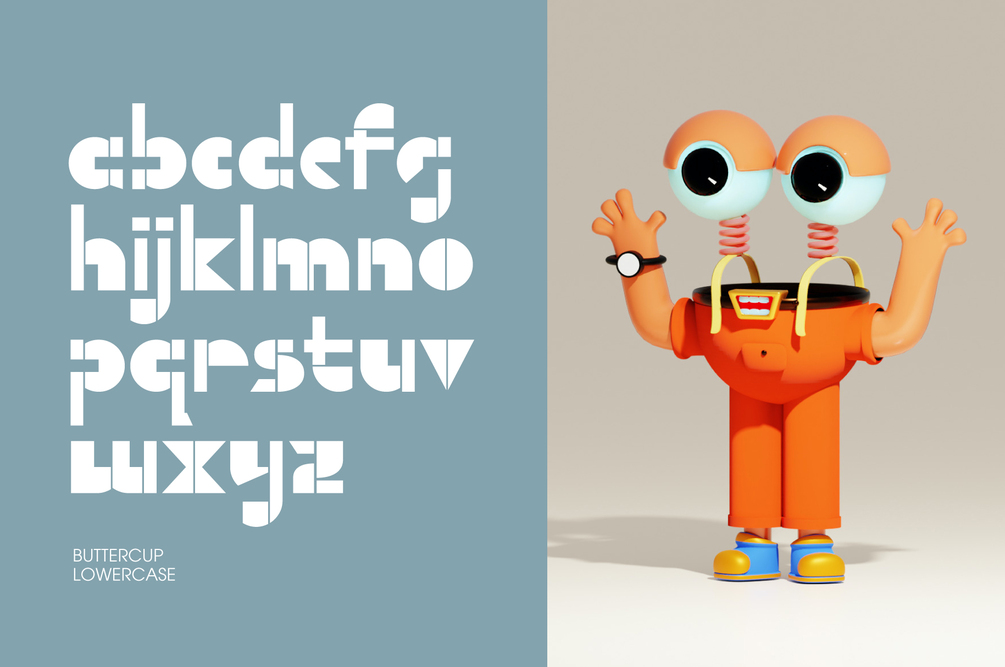 Buttercup is a fun, playful, and quirky typeface. It's perfect for kid related projects. You can use it for packaging, toys, logos, stickers, posters, stationary, and much more. If you're in need of a fun yet memorable font, then look no further than Buttercup.