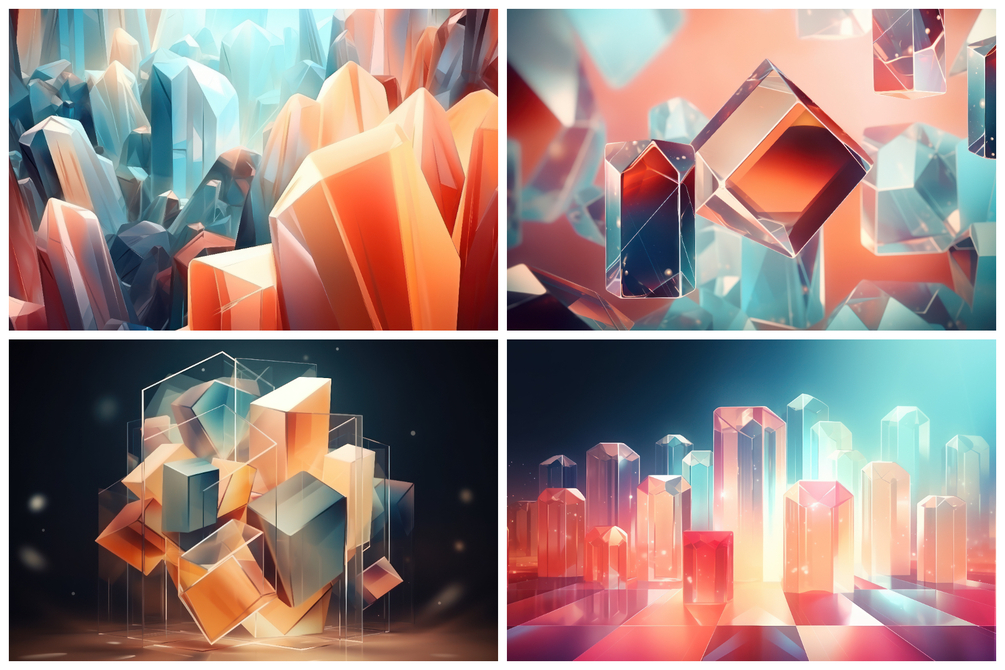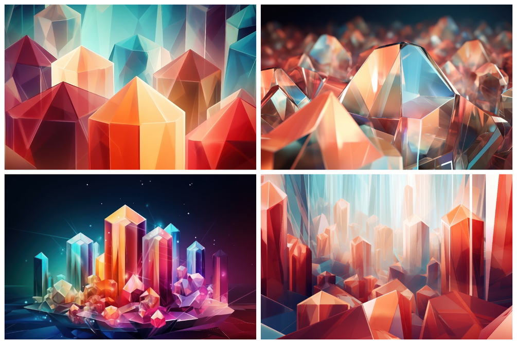 Each background is a mesmerizing fusion of intricate shapes, vibrant hues, and prism-like reflections, captivating the eye and igniting the imagination.
