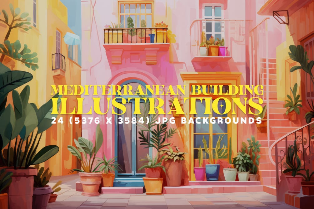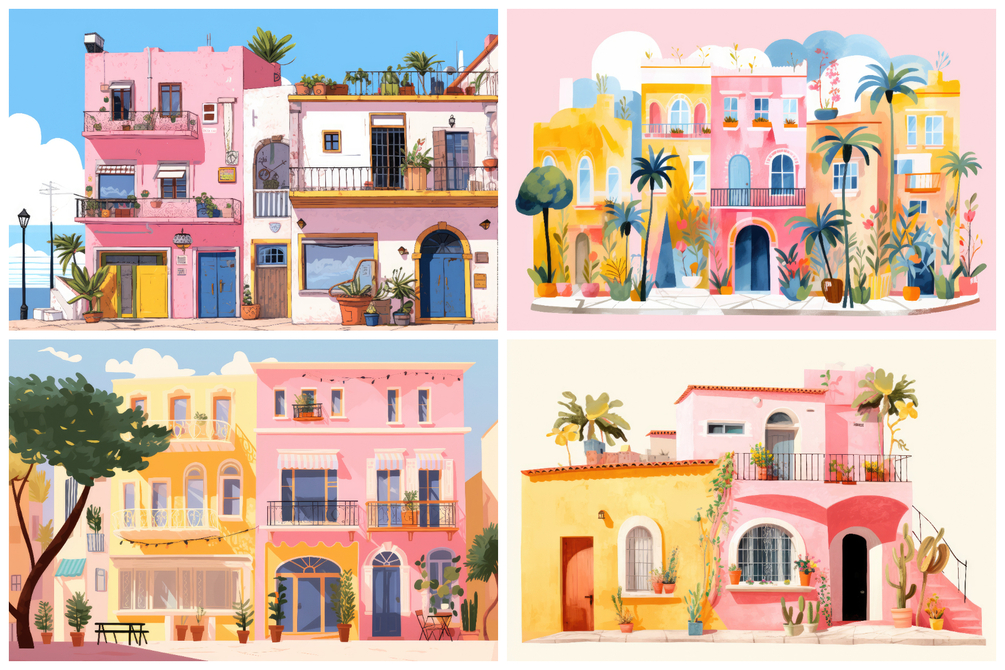 Experience an irresistible digital treasure that transports you to the sun-kissed idyll of Mediterranean villages. Immerse yourself in the charm of 24 meticulously crafted village building illustrations that capture the essence of these timeless locales.