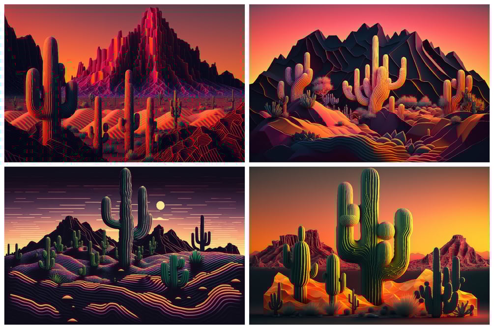 28 Neon Desert Illustrations In 6K