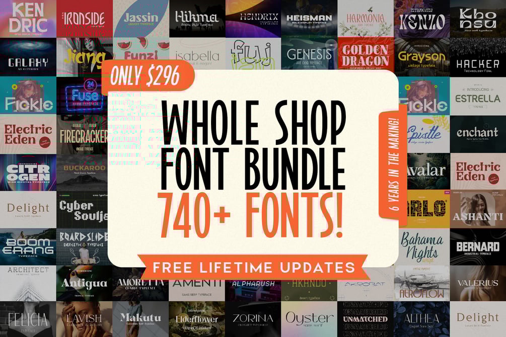 With over 740 fonts at your fingertips, the creative possibilities are endless. From retro, to modern, to experimental fonts, this bundle has it all.